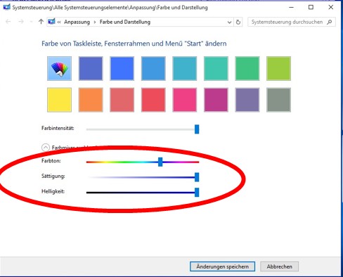 4) Nun erscheint das Menü Farbe und Darstellung.