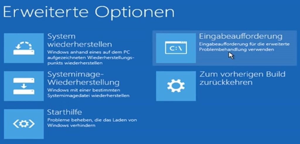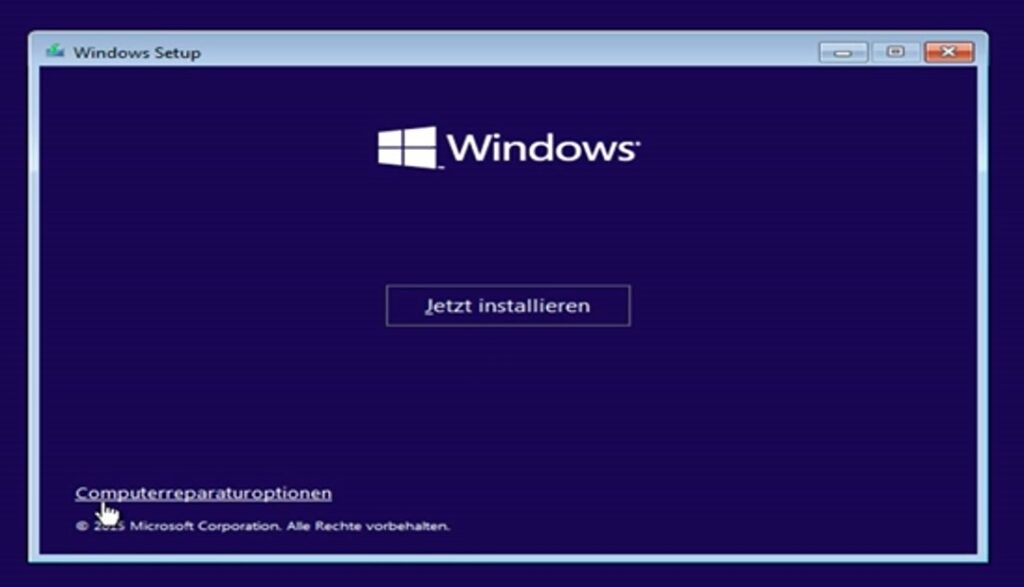 Hier wählen Sie in der linken Seite „Computerreparaturoptionen“.