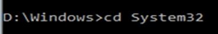 Der Befehl lautet „cd windows“ und dann wieder „Enter“ drücken.