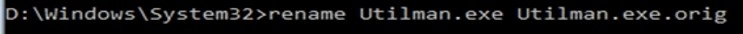 10) Nun werden wir die Datei „utilman.exe“ umbenennen in „utilman.exe.orig“. (.orig ssteht für „Original“)