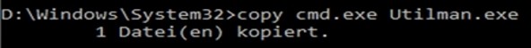 Und zwar geht das mit: „copy cmd.exe utilman.esxe“.